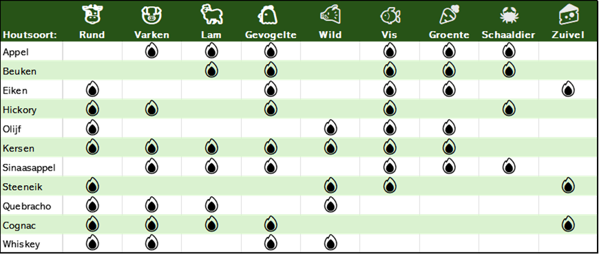 Of je nu rund, varken, lam, vis, schaaldieren of groenten rookt: er is altijd een houtsoort die erbij past.