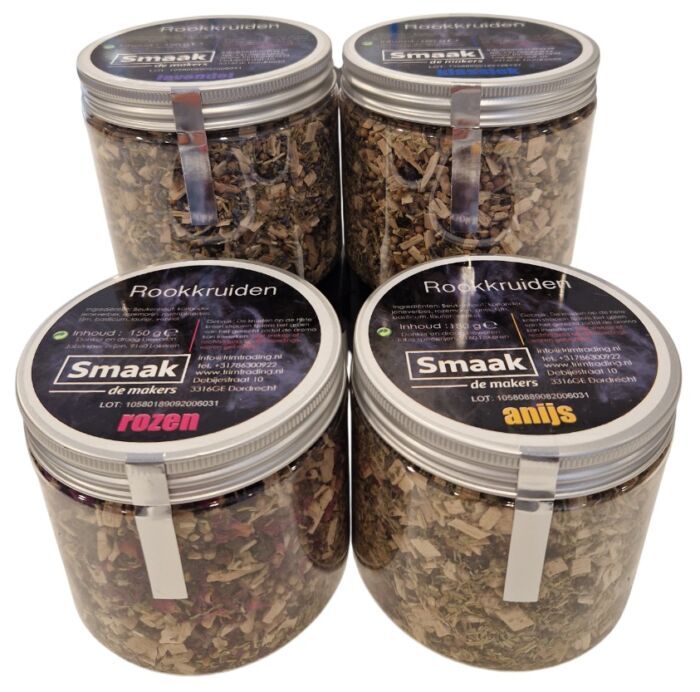 Til je barbecue naar een hoger niveau met dit geurige voordeelpakket vol karakter! Vier unieke mixen – Anijs, Klassiek, Lavendel en Rozen – brengen elk hun eigen kruidige of bloemige signatuur. Perfect om jouw vlees, vis of groenten een subtiele rooktoets mee te geven.